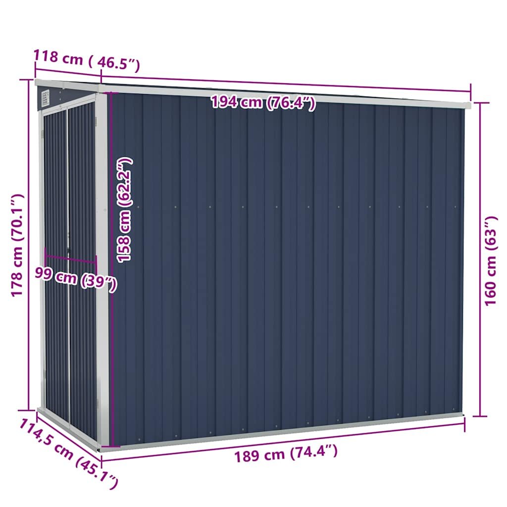 Zahradní kůlna antracitová 118 x 194 x 178 cm ocel 316223