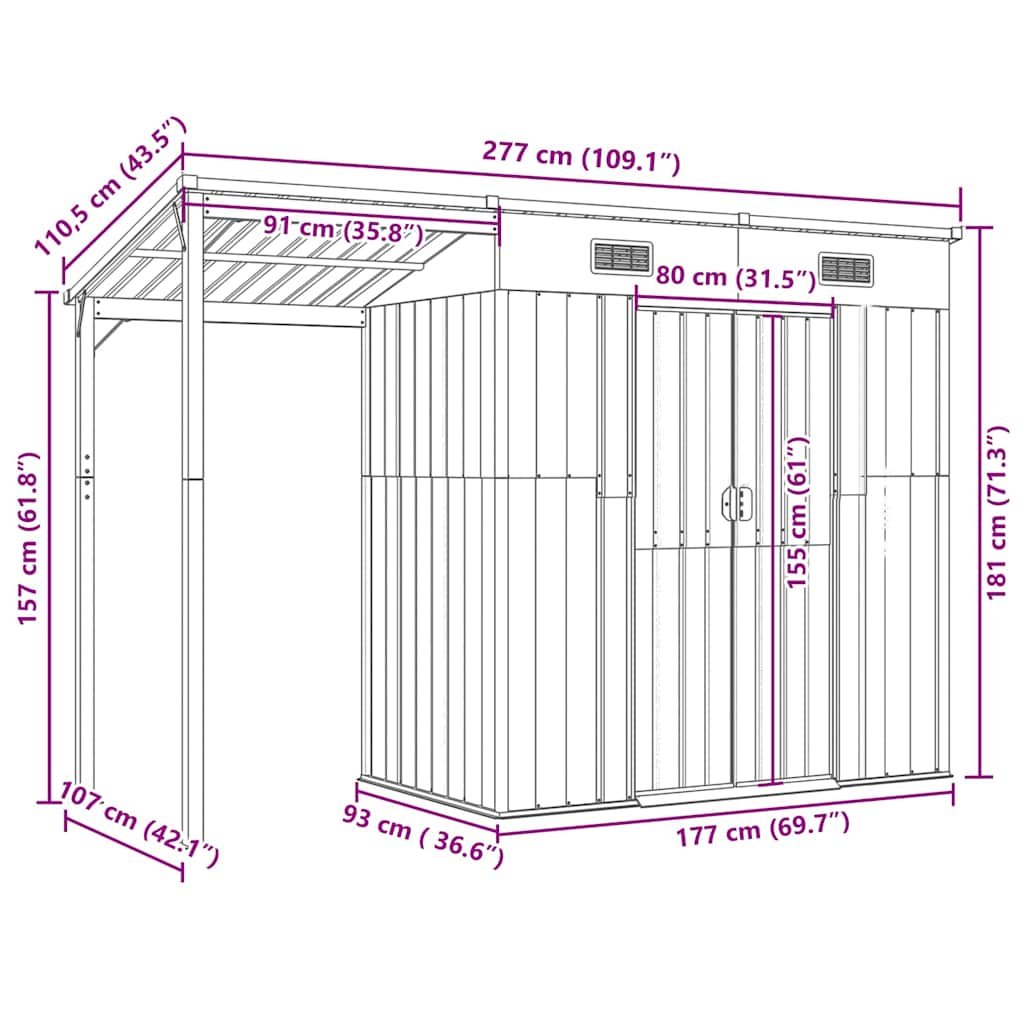 - Vnější rozměry kůlny: 177 x 93 x 157/181 cm (Š x H x V)