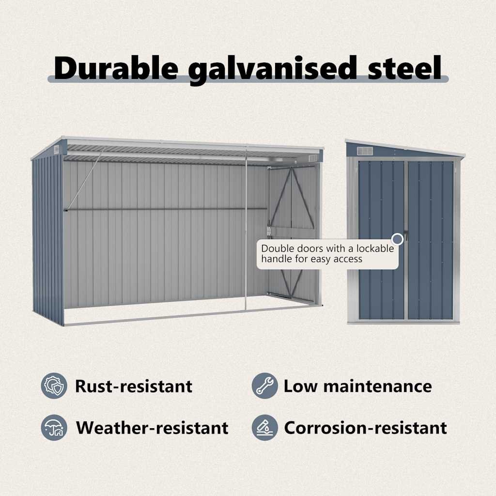 Zahradní kůlna šedá 118 x 288 x 178 cm pozinkovaná ocel 316226