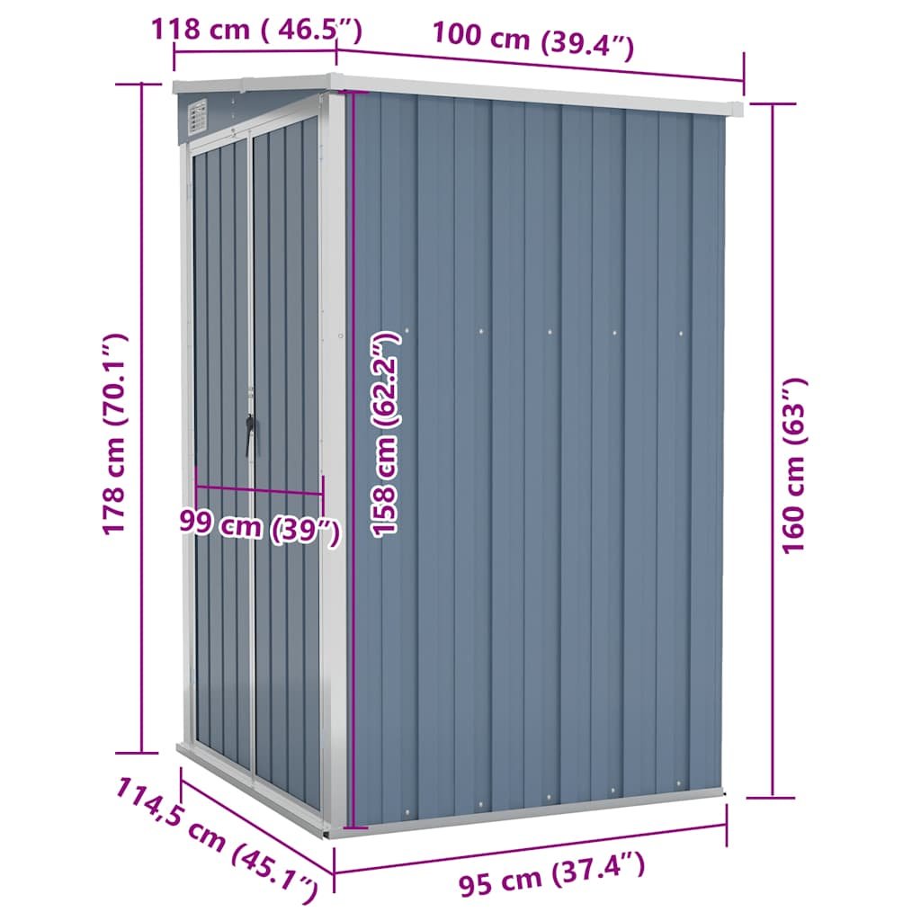 Zahradní kůlna šedá 118x100x178 cm pozinkovaná ocel 316218