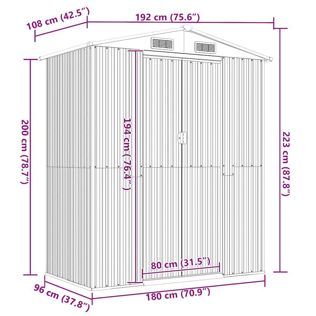 Zahradní kůlna světle šedá 192 x 108 x 223 cm pozinkovaná ocel 319269