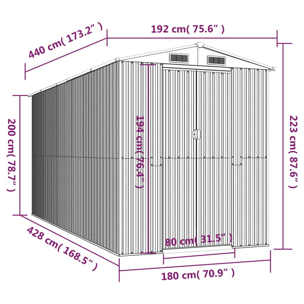 Zahradní kůlna světle šedá 192 x 440 x 223 cm pozinkovaná ocel 3147441
