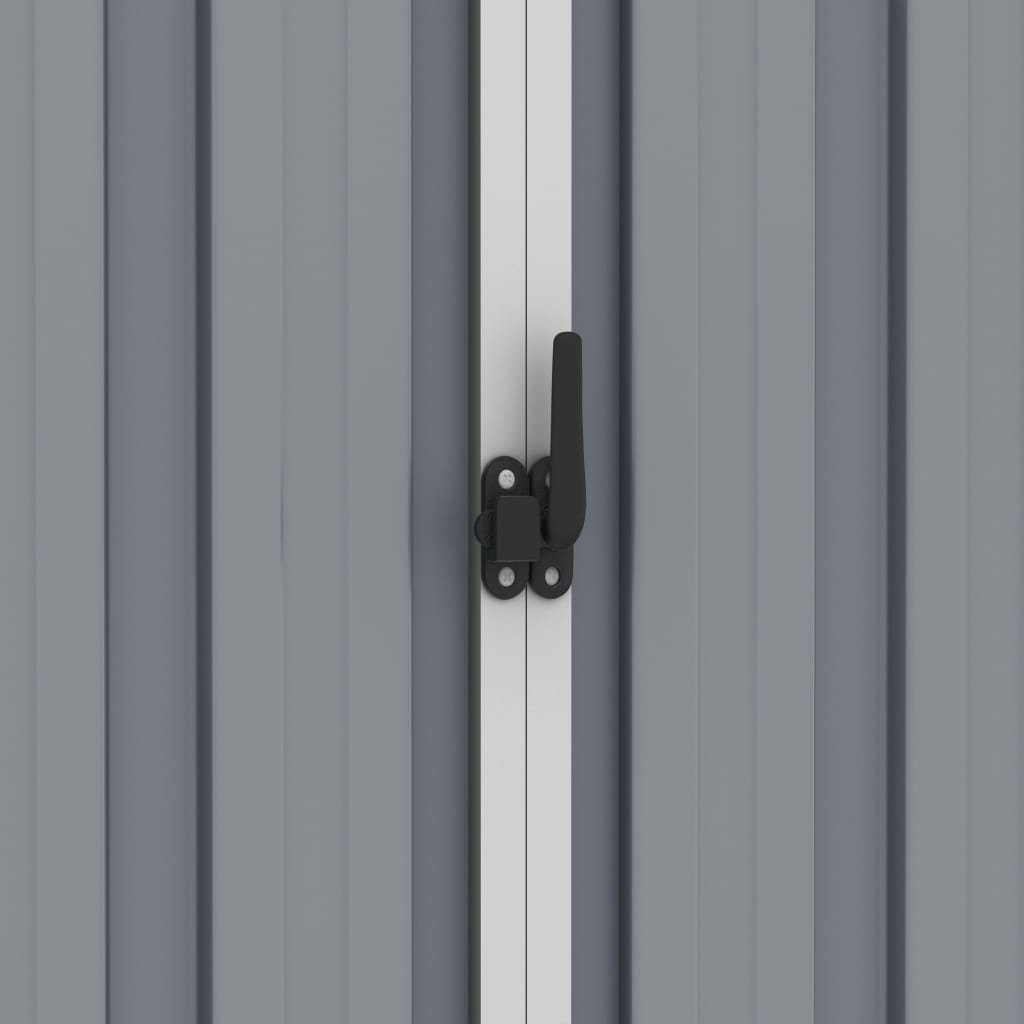 Tato úložná kůlna je vybavená ventilačními otvory, navrženými jako okenice, které chrání interiér před deštěm. Také zajišťují nepřetržitou ventilaci, takže se předchází hromadění vlhkosti a zápachu v domku. Tato venkovní úložná kůlna z pozinkované oceli vyžaduje jen minimální údržbu a má velmi dlouhou životnost. Dvoukřídlé dveře umožňují snadný vstup a výstup. Dešťová voda automaticky stéká ze zešikmené střechy.