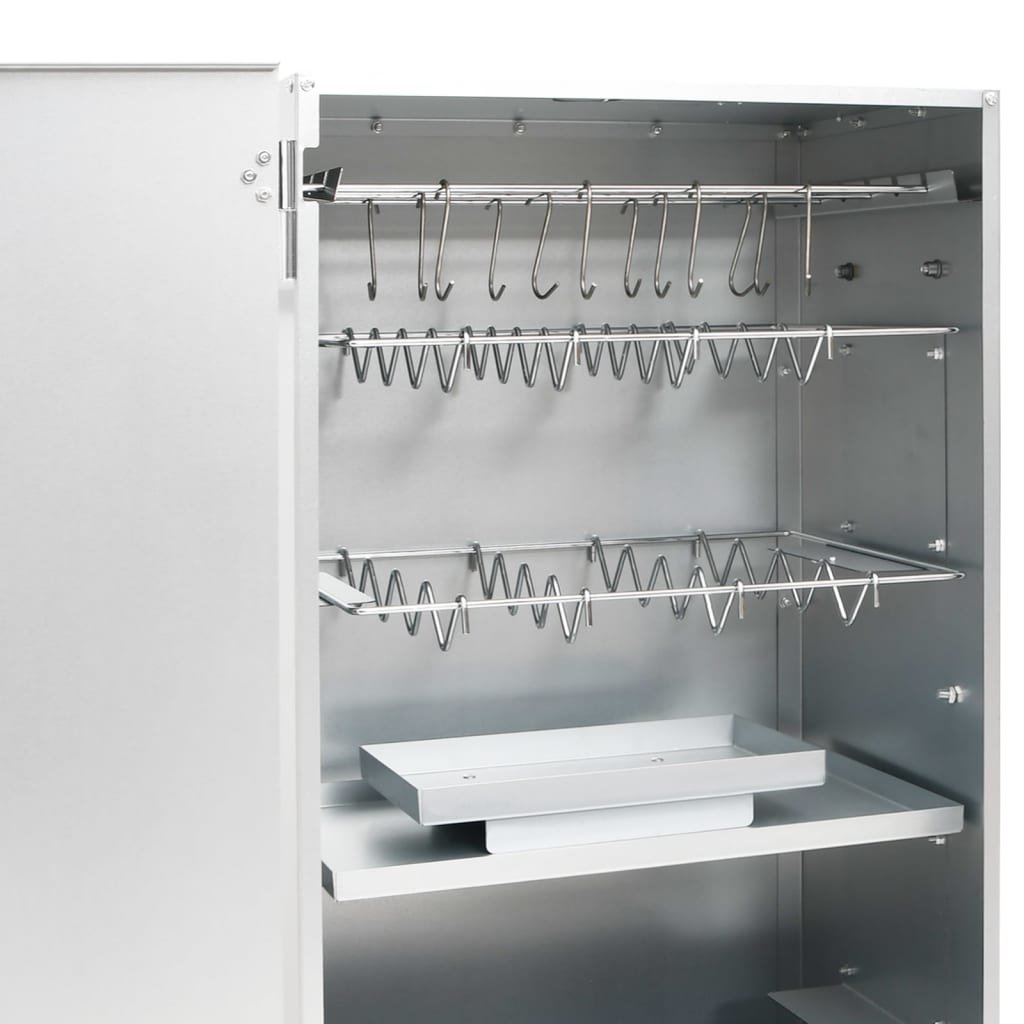 - Dostatek prostoru na uzení: Venkovní udírna poskytuje dostatek prostoru pro uzení masa, ryb, klobás apod. Pomocí přiložených háků ve tvaru písmene S a roštů bude grilování pohodlnější.