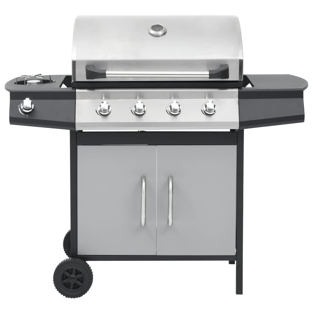 Plynový gril 4+1 hořáky černý a stříbrný ocel a nerezová ocel 310107