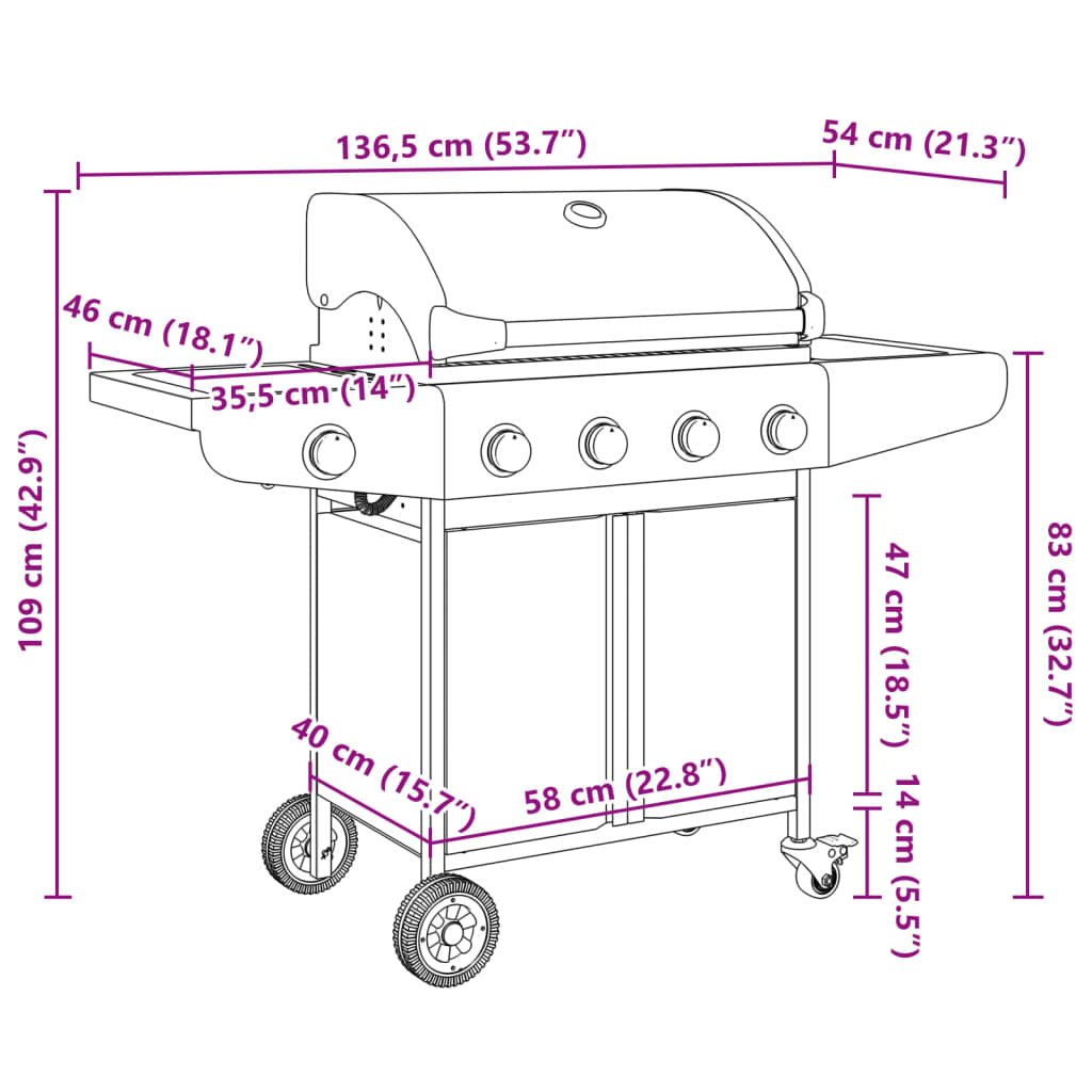 - Rozměry bočního hořáku: 46 x 35,5 cm (D x Š)