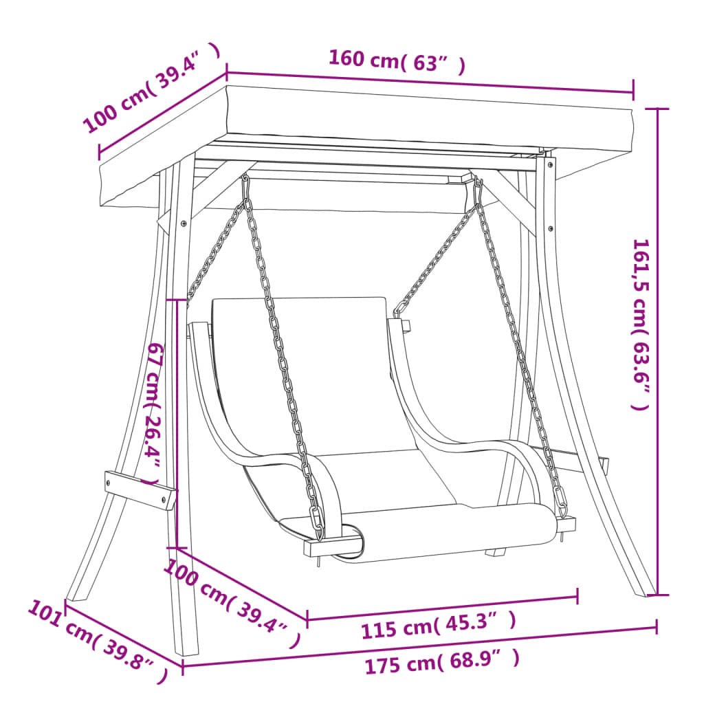 Houpací závěsné křeslo s poduškou a stříškou masivní smrk 3200630