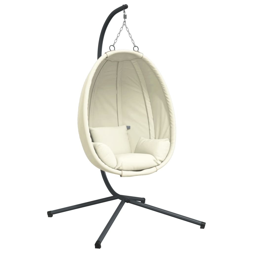 Závěsné křeslo vajíčko se stojanem béžové textil a ocel 4007401
