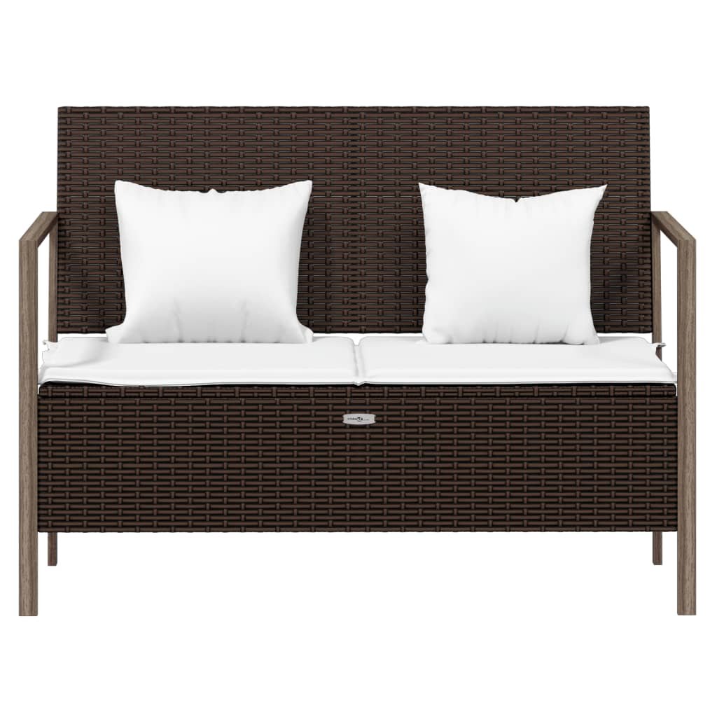 2místná zahradní lavice s poduškami hnědá polyratan 364113