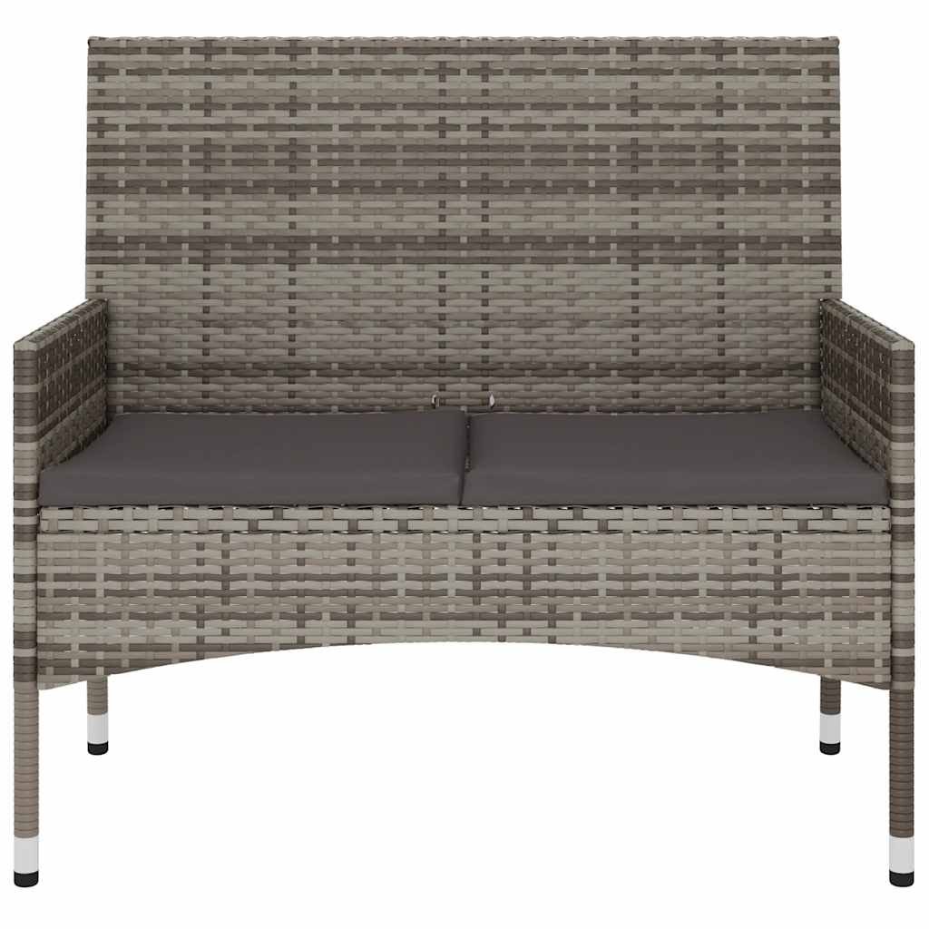 2místná zahradní lavice s poduškami šedá polyratan 319489