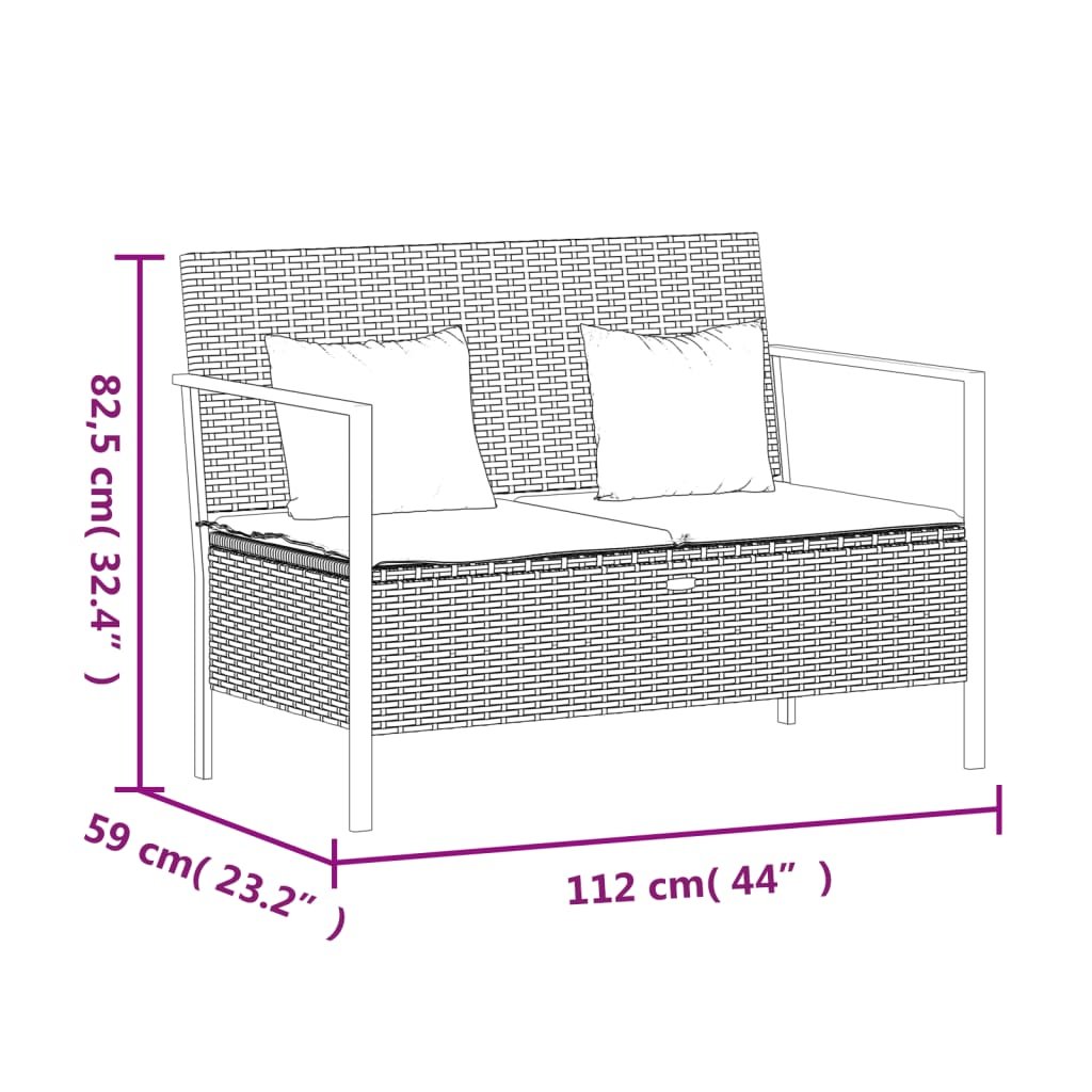 2místná zahradní lavice s poduškami šedá polyratan 364111