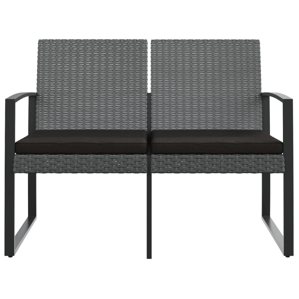2místná zahradní lavice s poduškami tmavě šedá PP ratan 360211