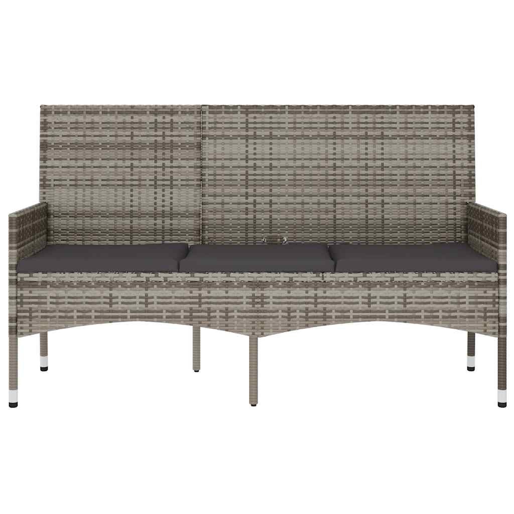 3místná zahradní lavice s poduškami šedá polyratan 319493