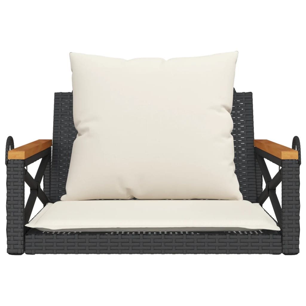 Houpací lavice s poduškami černá 63 x 62 x 40 cm polyratan 368173