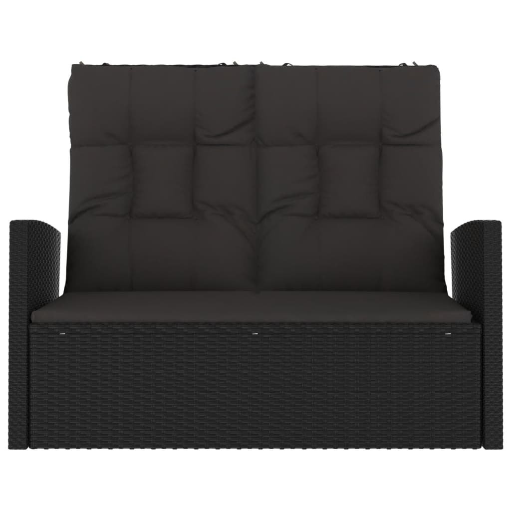 Polohovací zahradní lavice s poduškami černá 118 cm polyratan 362185