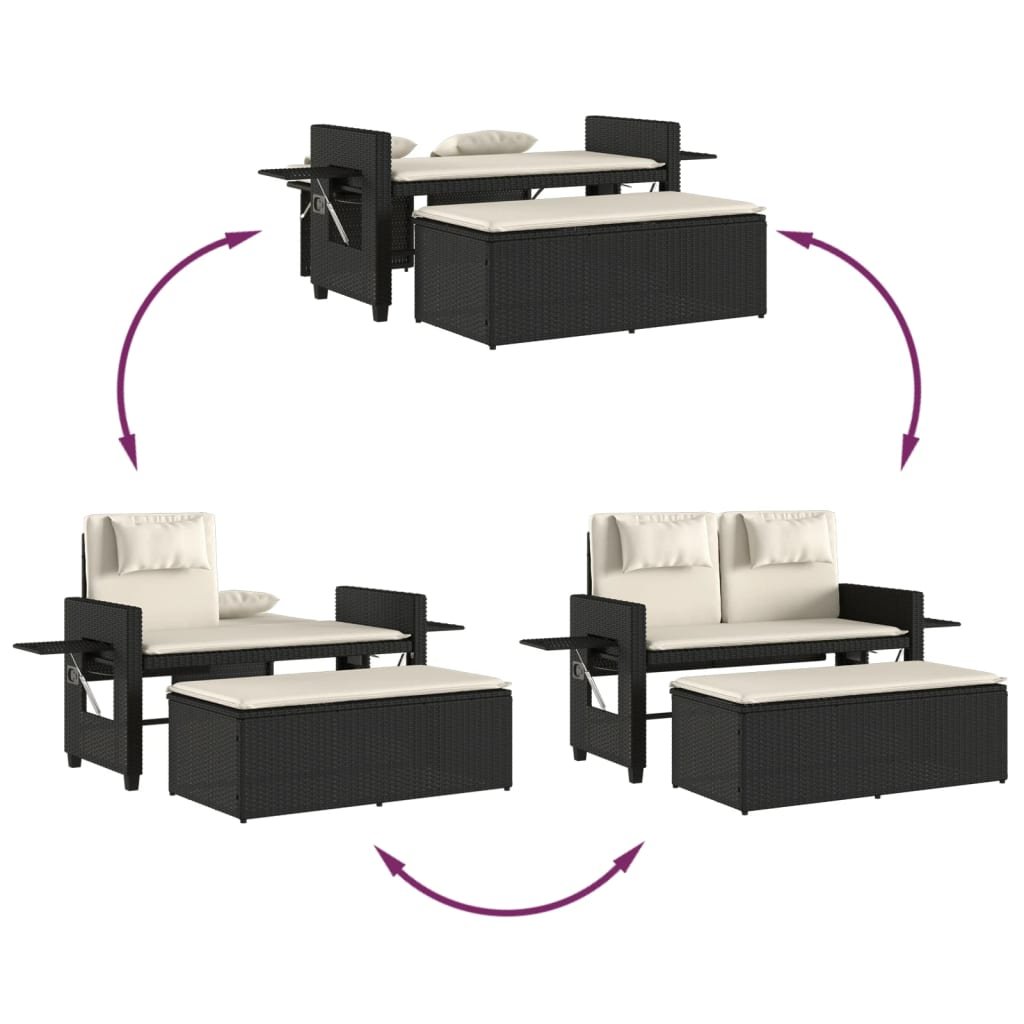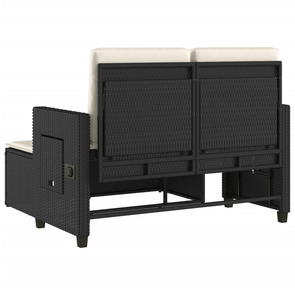 Polohovací zahradní lavice s poduškami černá polyratan 365816