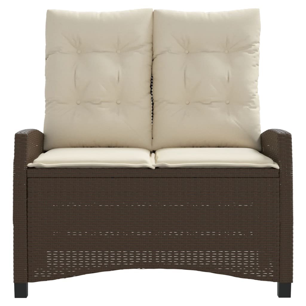 Polohovací zahradní lavice s poduškami hnědá polyratan 368227