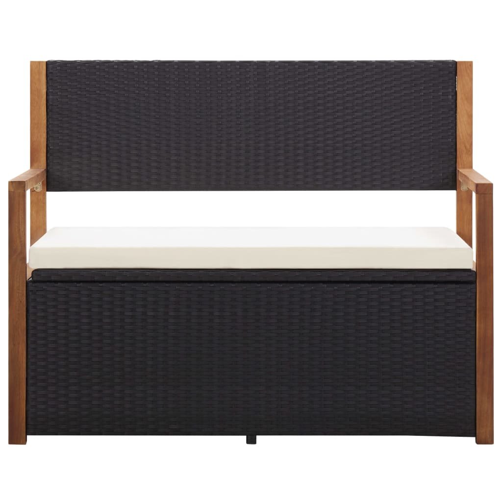 Úložná lavice 115 cm polyratan a masivní akáciové dřevo černá 46010