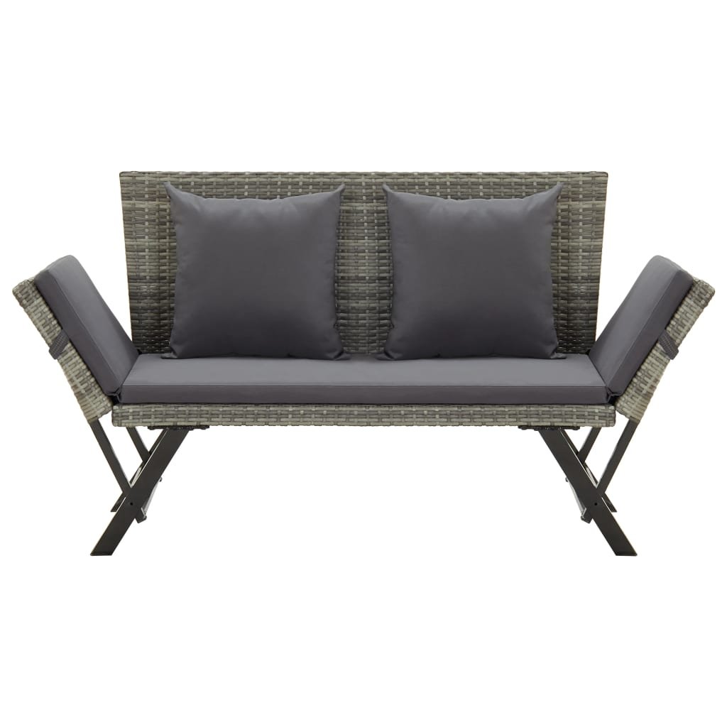 Zahradní lavice s poduškami 176 cm šedá polyratan 46232