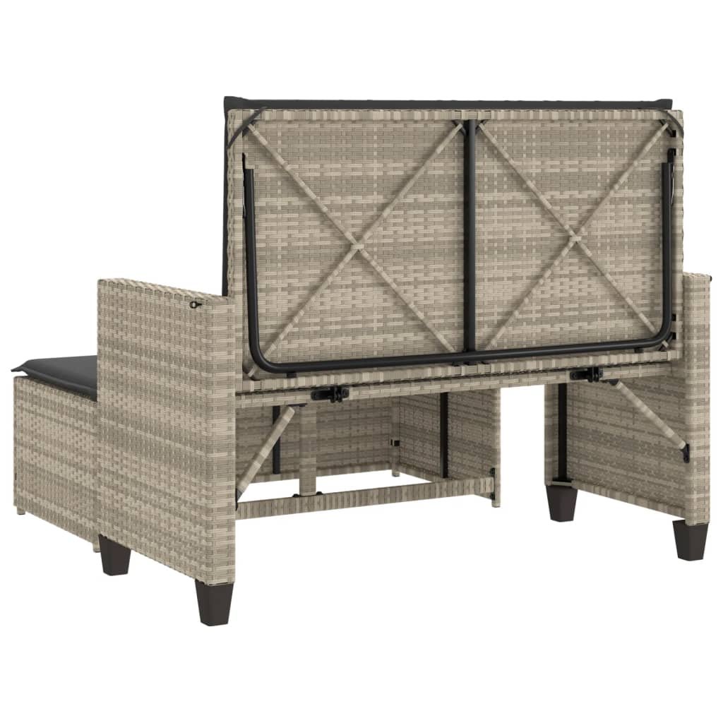 Zahradní lavice s poduškami a podnožkou světle šedá polyratan 368412