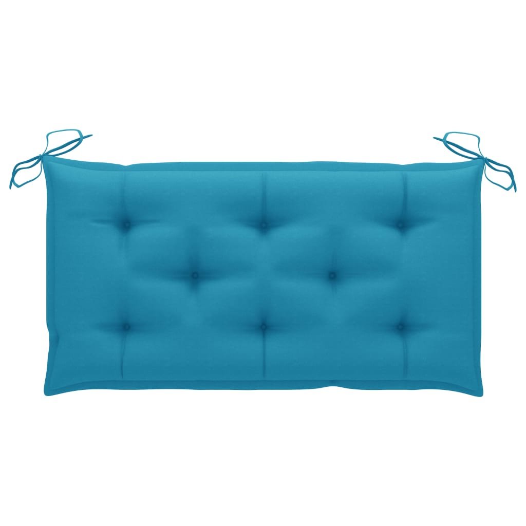 Zahradní lavice se světle modrou poduškou 112 cm masivní teak 3062668