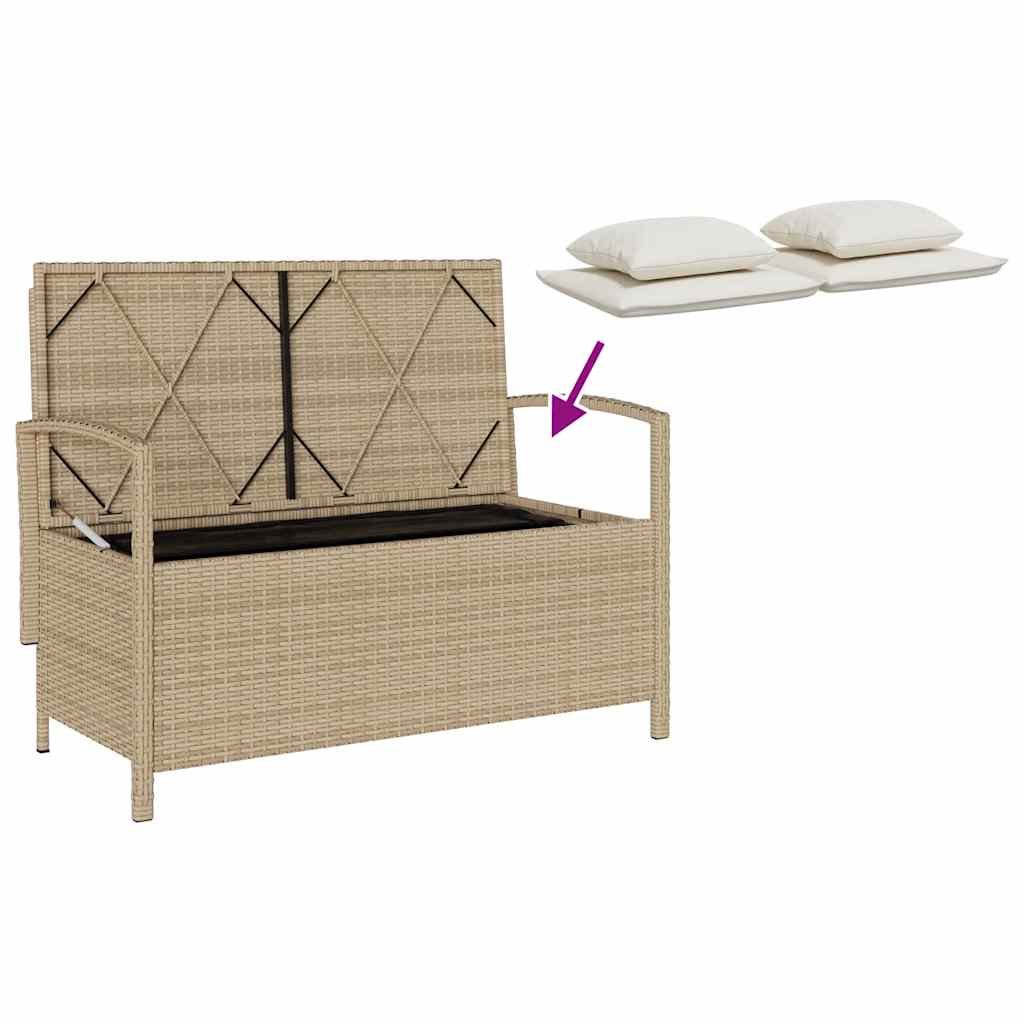 zahradní úložná lavice s béžová polyratanovým polštářem 4104215