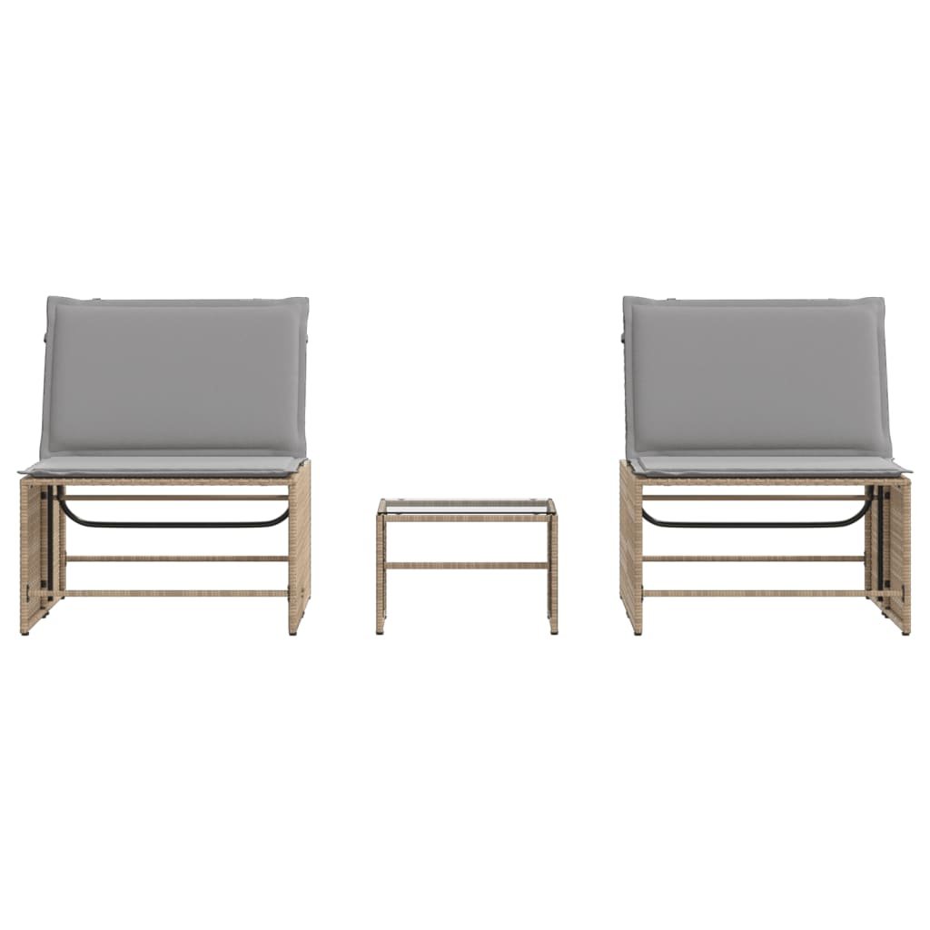 2dílná zahradní lehátka se stolkem béžová polyratan 368425