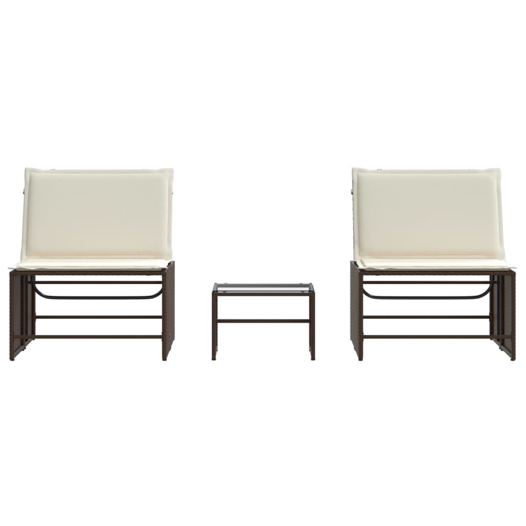 2dílná zahradní lehátka se stolkem hnědá polyratan 368423
