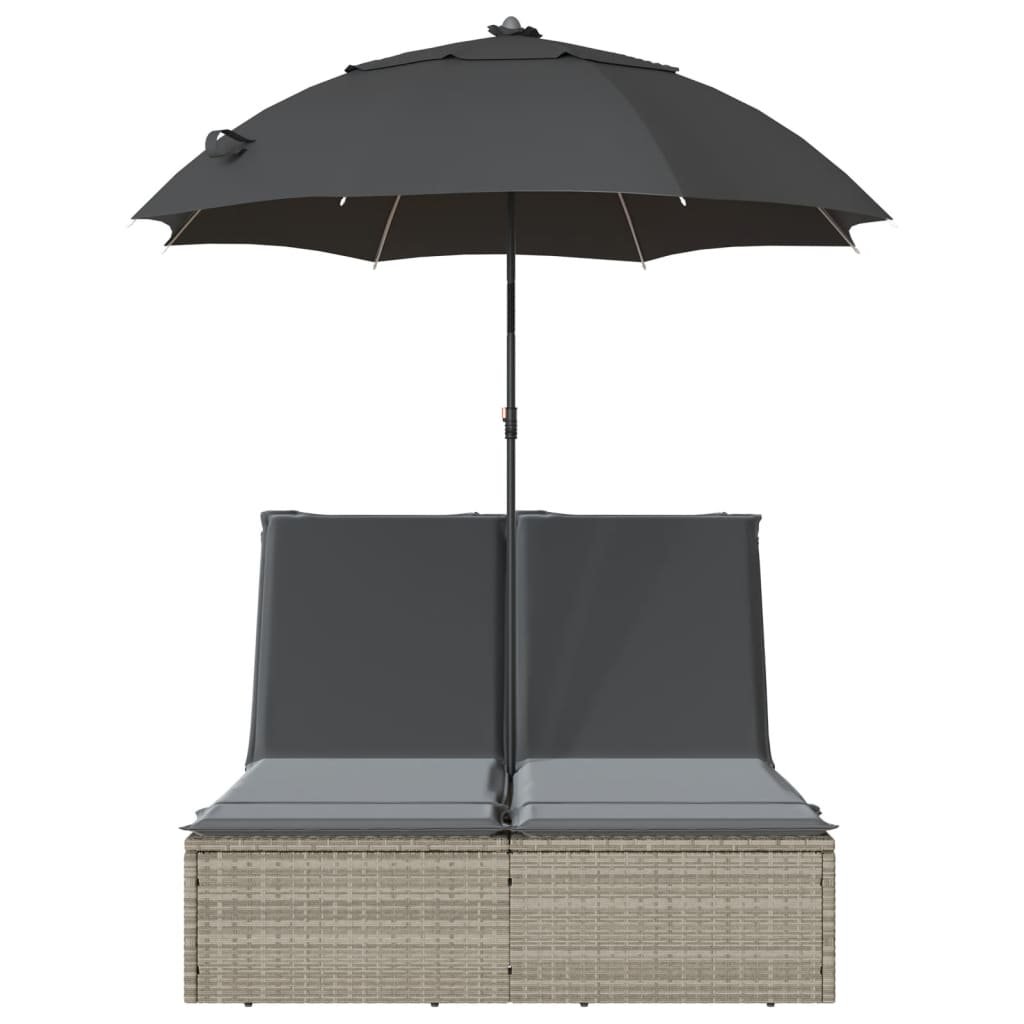 Dvojité lehátko s poduškami a slunečníkem světle šedé polyratan 368086