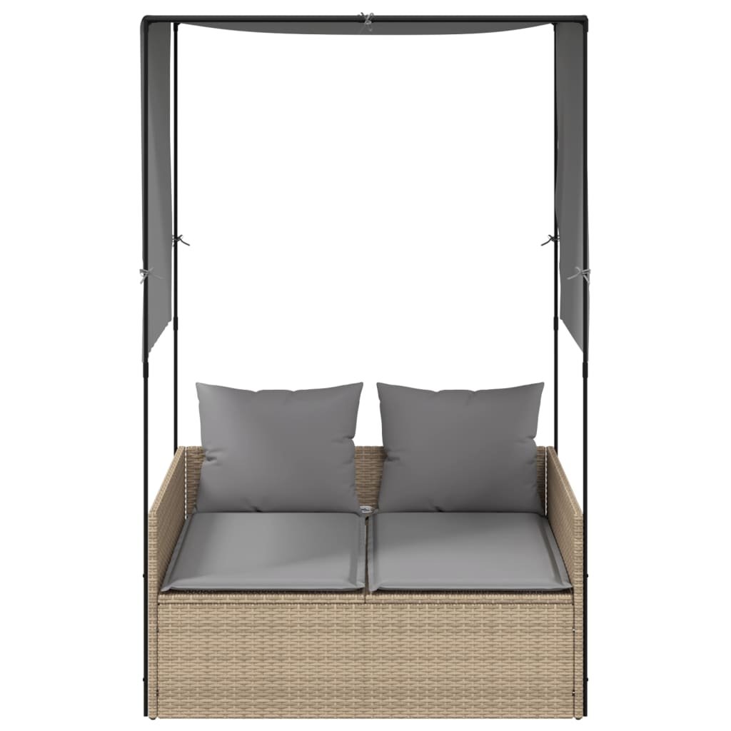Dvojité lehátko se střechou a závěsy béžové polyratan 4002758