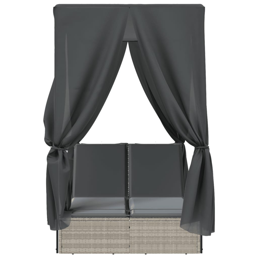 Dvojité lehátko se střechou a závěsy světle šedé polyratan 368077