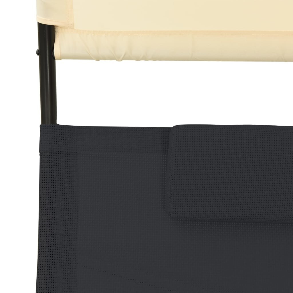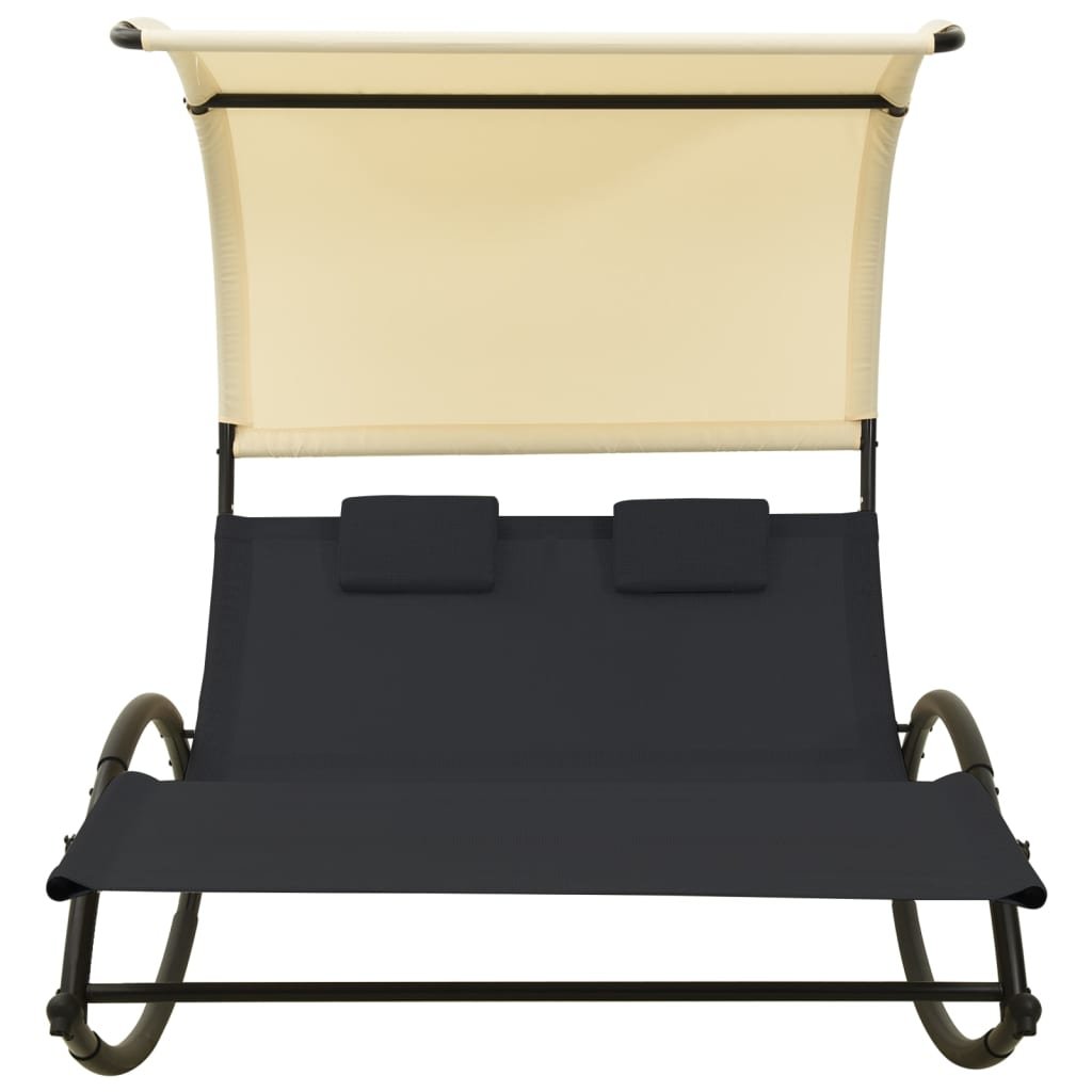 Dvojité zahradní lehátko s baldachýnem textilen černé a krémové 310547