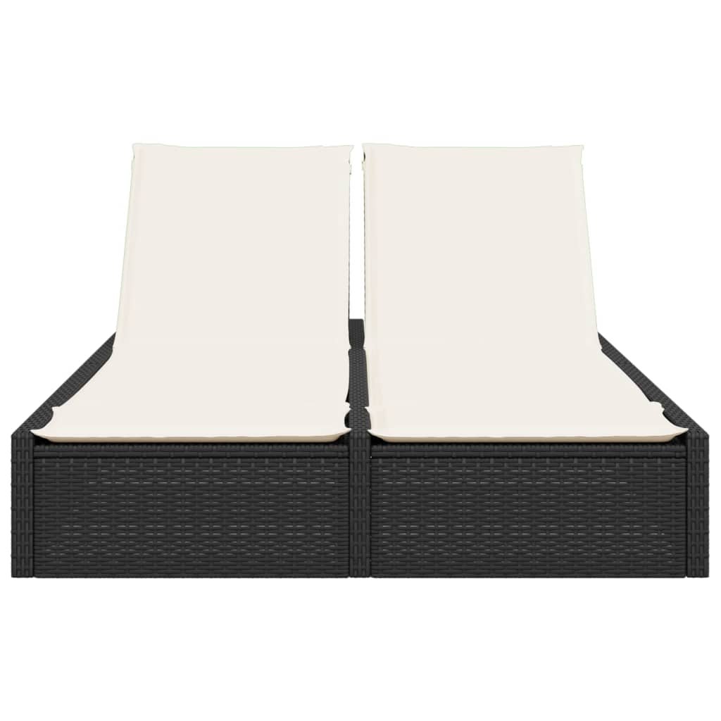 Dvojité zahradní lehátko s poduškami černé polyratan 368628