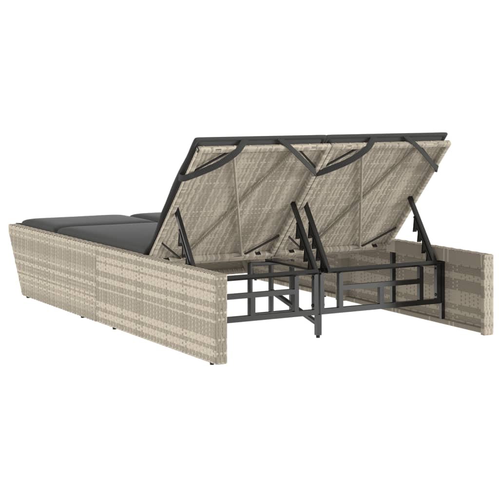 Dvojité zahradní lehátko s poduškami světle šedé polyratan 368184