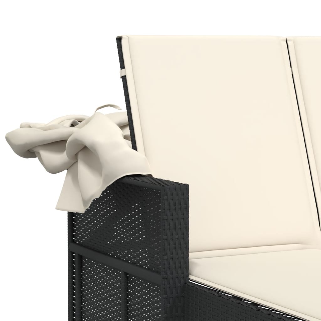 Dvojité zahradní lehátko se stříškou a podušky černé polyratan 365806