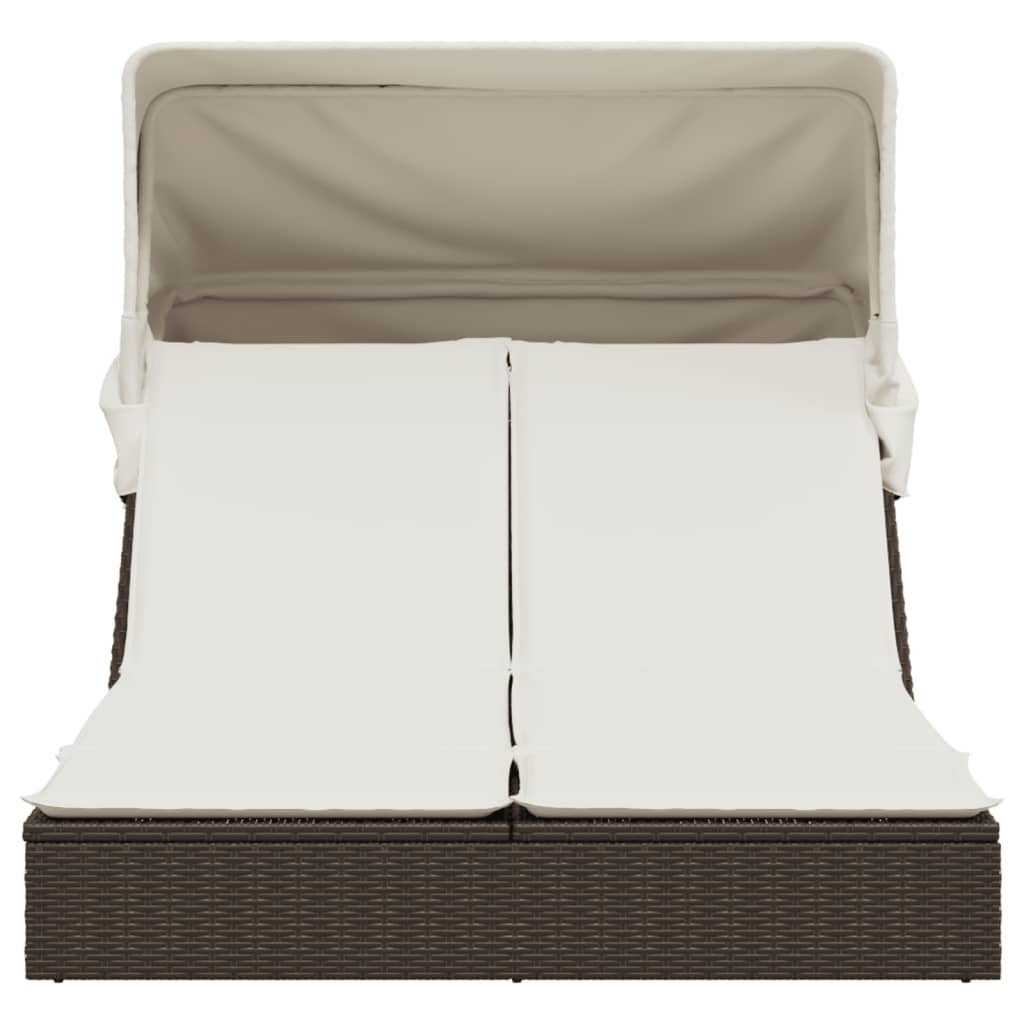 Dvojité zahradní lehátko se stříškou a podušky hnědé polyratan 368638