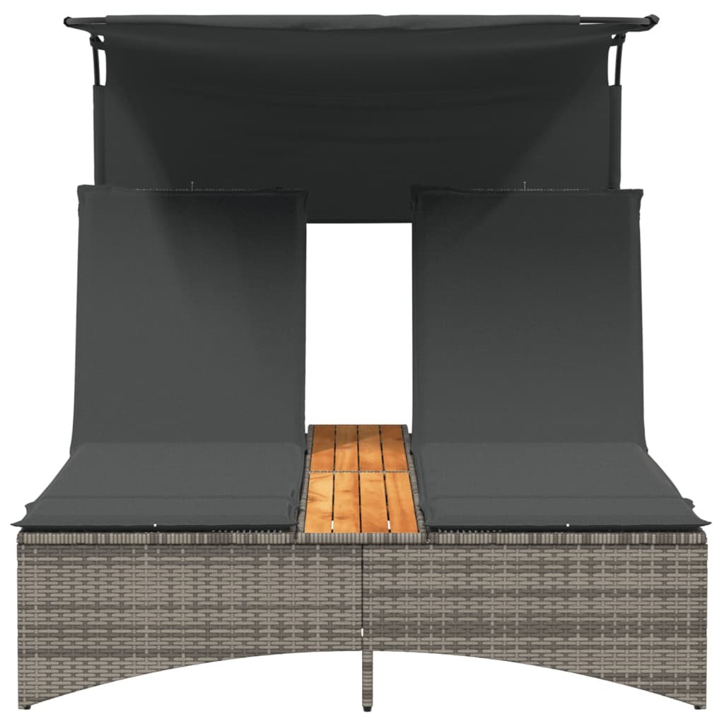 Dvojité zahradní lehátko se stříškou a podušky šedé polyratan 365622