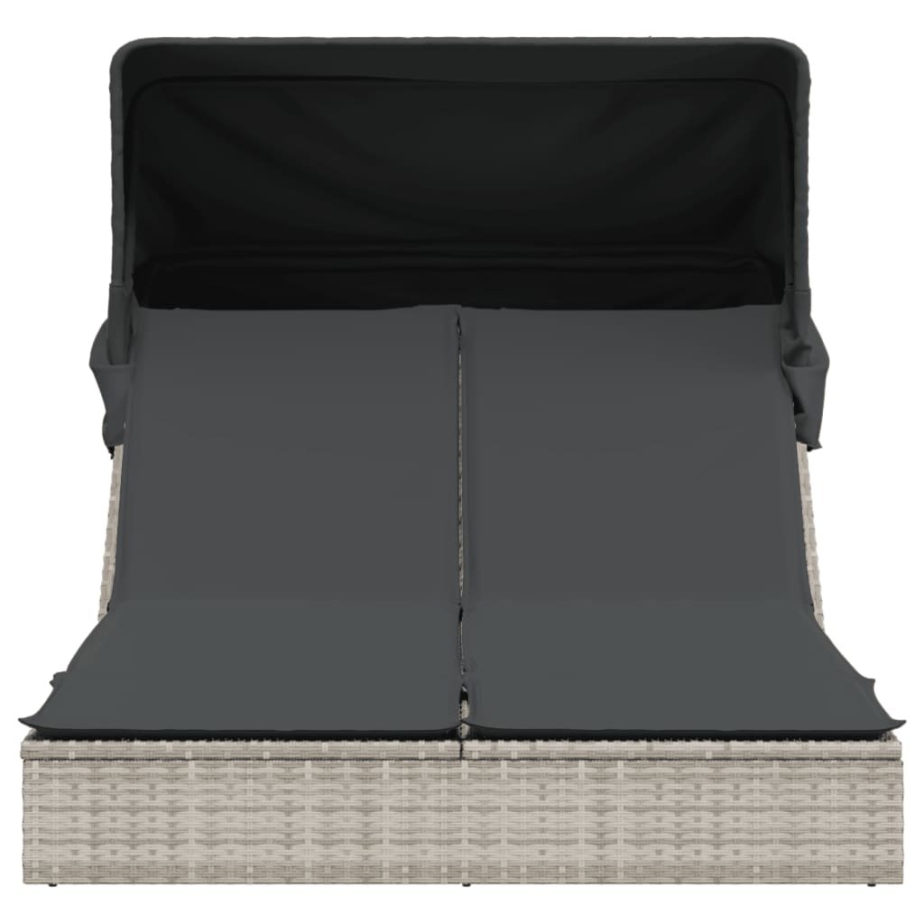 Dvojité zahradní lehátko se stříškou a podušky světle šedé 368642