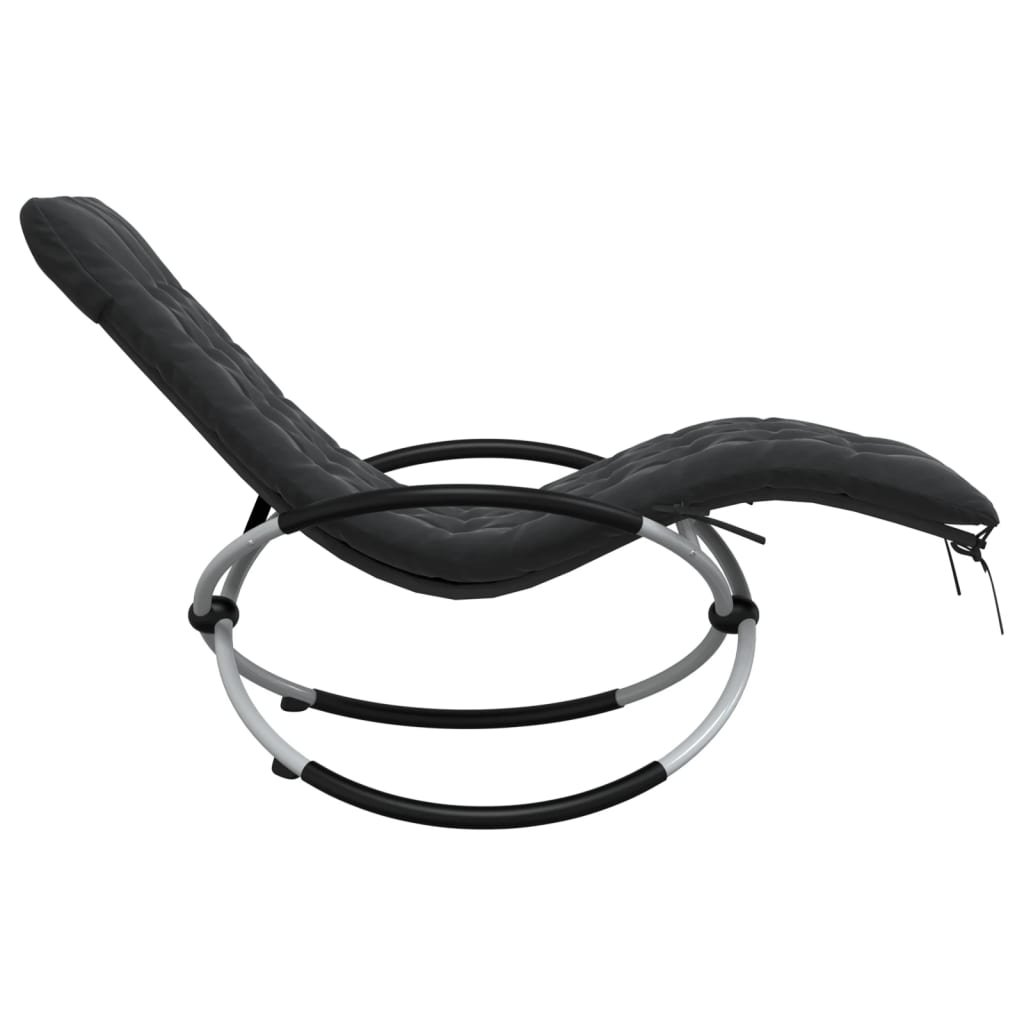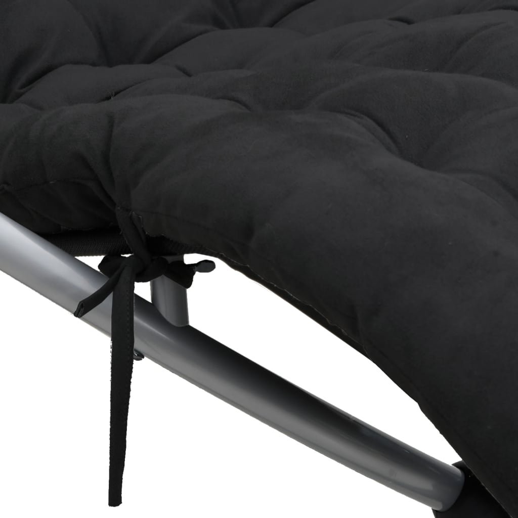 Geometrické zahradní lehátko s poduškou černé a šedé ocel 3213545