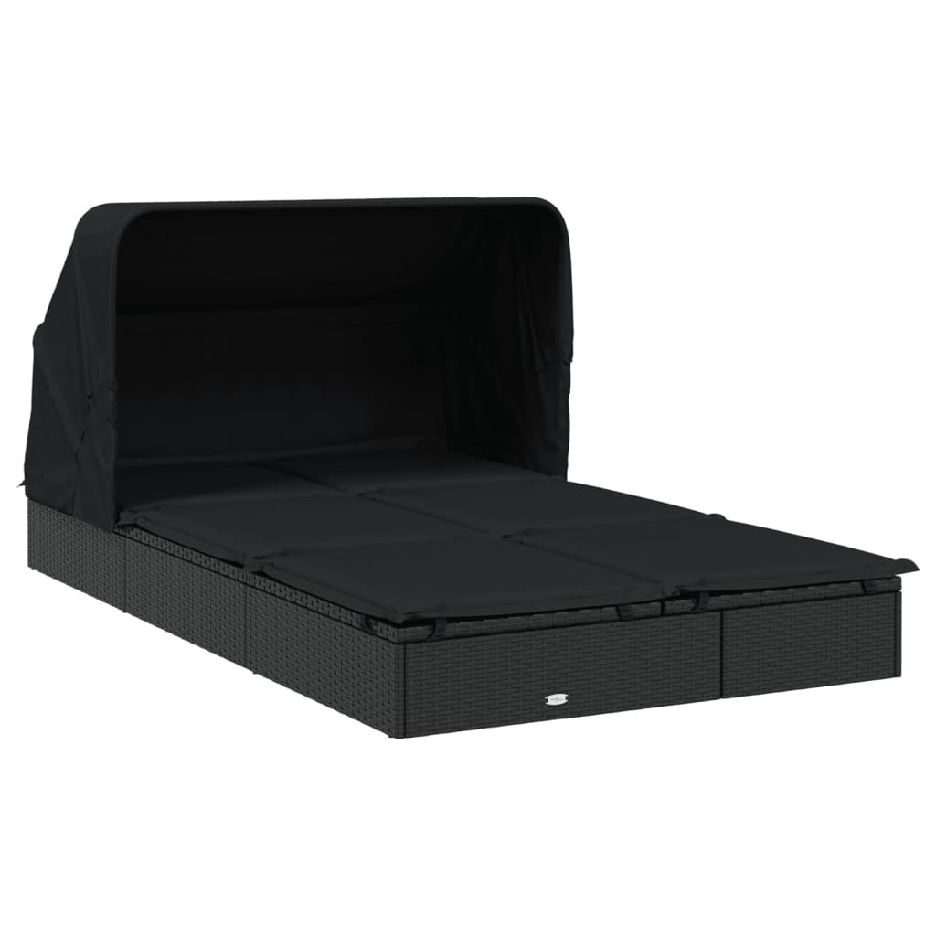 Lehátko se skládací střechou pro 2 černé 213x118x97cm polyratan 319652