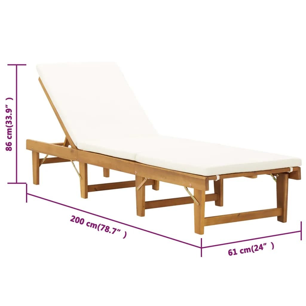 Skládací lehátko s poduškou masivní akáciové dřevo krémově bílé 316645