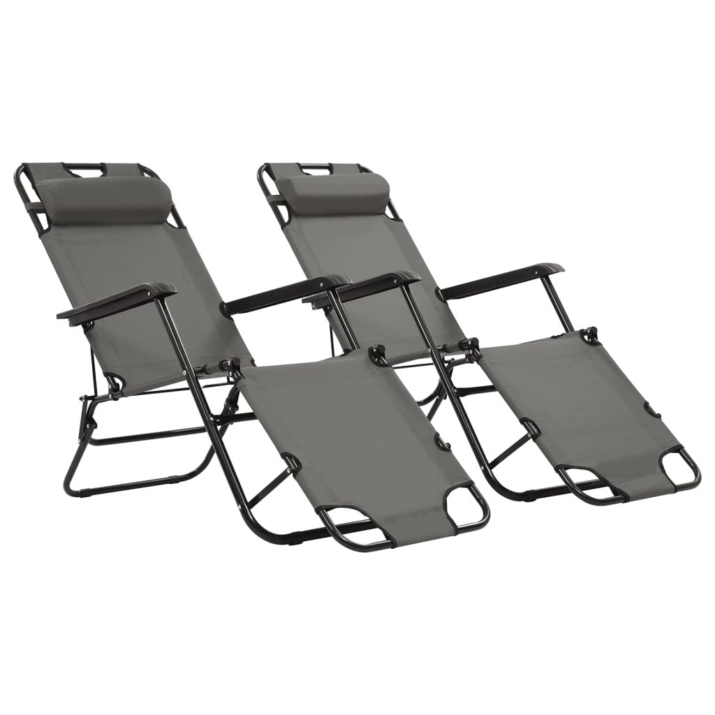 Skládací zahradní lehátka 2 ks s podnožkou ocel šedá 44345
