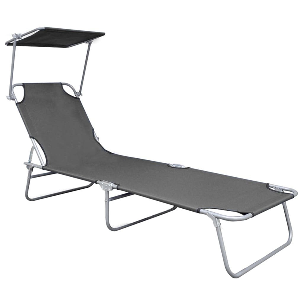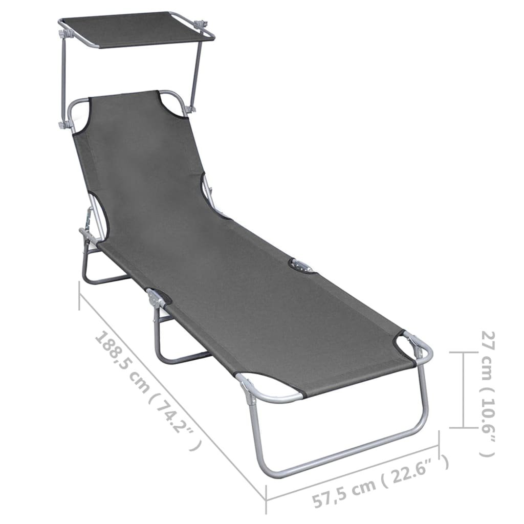 Skládací zahradní lehátko se stříškou šedé hliník 47772