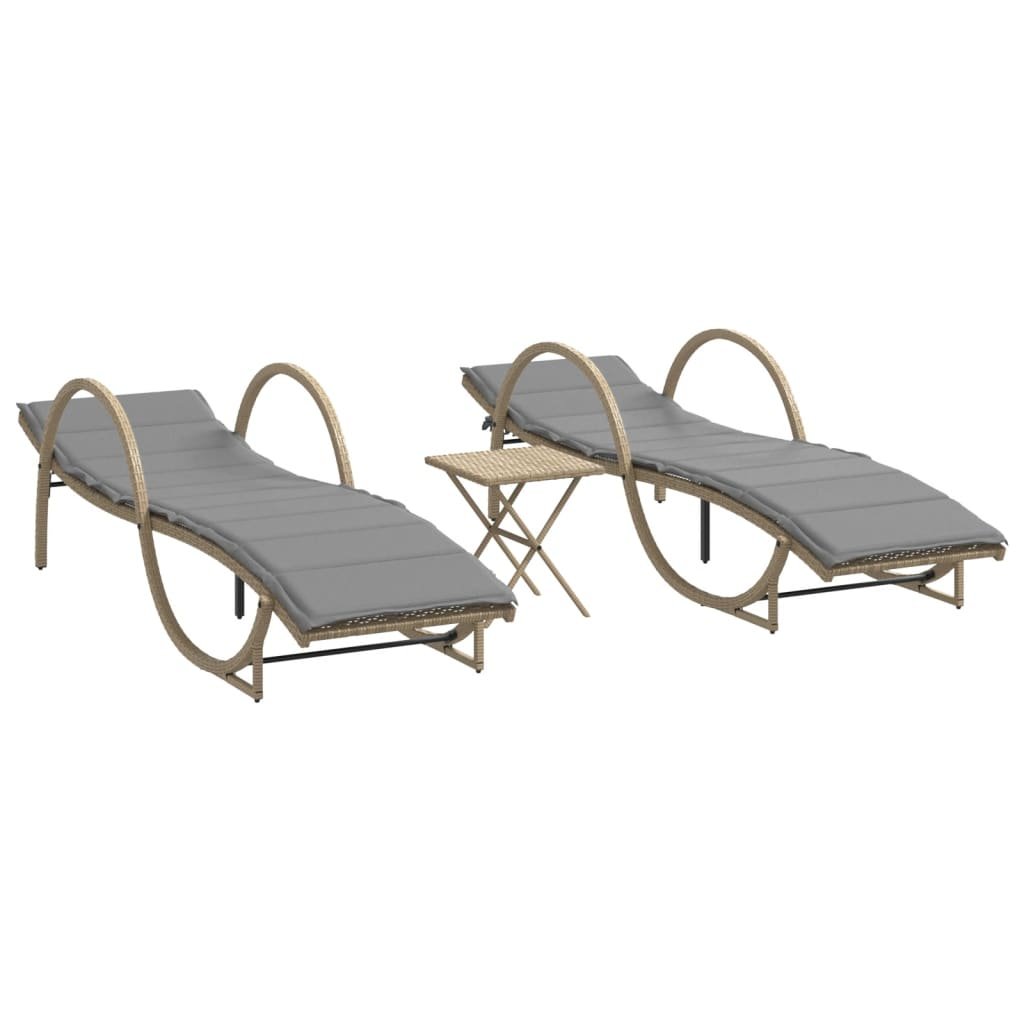 Zahradní lehátka 2 ks se stolkem béžová polyratan 368267