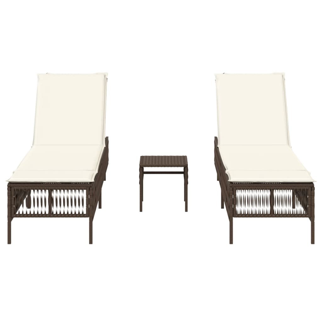 Zahradní lehátka 2 ks se stolkem hnědá polyratan 4002747