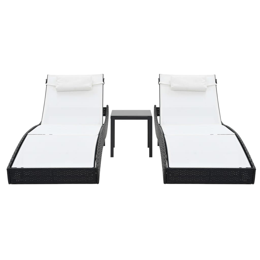 Zahradní lehátka 2 ks se stolkem polyratan a textilen černá 44894