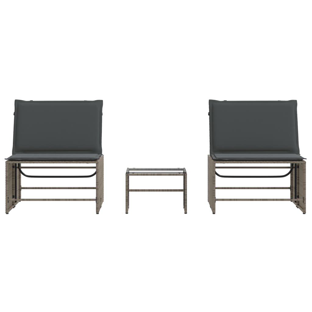 Zahradní lehátka 2 ks se stolkem šedá polyratan 368424