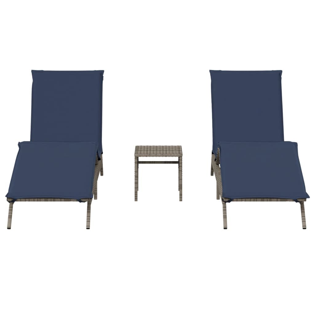 Zahradní lehátka 2 ks se stolkem šedá polyratan 4002716