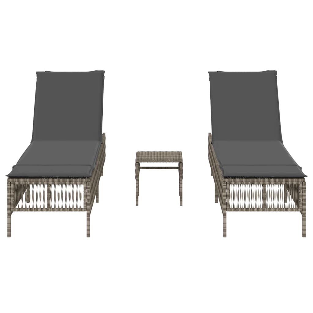 Zahradní lehátka 2 ks se stolkem šedá polyratan 4002748