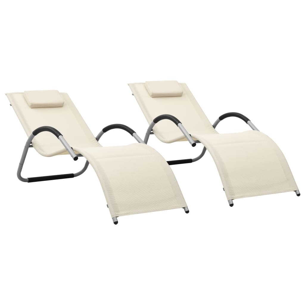 Zahradní lehátka 2 ks textilen krémové a šedé 310518
